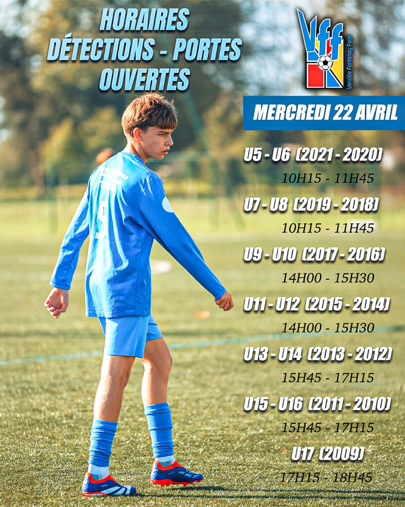 Le Vendée Fontenay Foot organise sa journée portes ouvertes et détections le mercredi 22 avril pour préparer la saison prochaine !